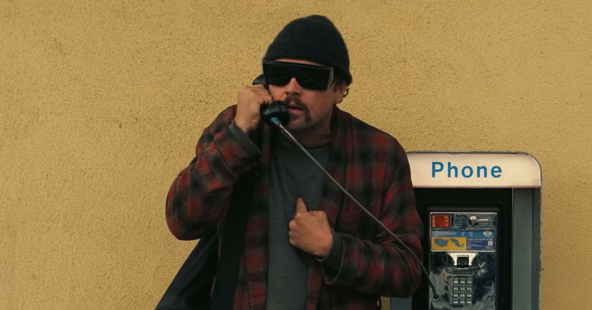 Agora, no meio desses comentários todos, passa batido um dos momentos mais fortes do filme. Depois das cenas iniciais, marcadas pelas ações de guerrilha e sua derrocada, a narrativa se concentra na vida de Bob. Dezesseis anos depois de derrota do grupo – que inclui a delação de uma de suas figuras mais importantes – ele está refugiado com sua filha em cidade santuário (essas cidades americanas que se declaram zonas de abrigo dos imigrantes, protegidos diante das ameaças de deportação). Bob aparece como uma figura à deriva: largado, paranoico, constantemente chapado, mas ainda assim responsável pelo cuidado da filha adolescente. De repente, a polícia militarizada (conduzida pela personagem interpretada por Sean Penn) descobre seu paradeiro. Ele tem que voltar à “ativa”, mas já sem condições. Bob precisa fugir e tentar salvar sua filha, mas está totalmente despreparado: atrapalhado, de roupão, com óculos escuros exagerados. Ele liga de uma cabine telefônica para a “organização” e, depois de ter conseguido entregar a filha a uma militante que deve levá-la a um lugar seguro, ele continua ligando para combinar alguma ajuda.