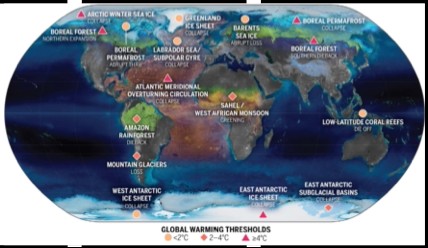 Figura 2. Localização dos Pontos de Inflexão (“Tipping Points”) Climáticos por Patamar de Aquecimento Global