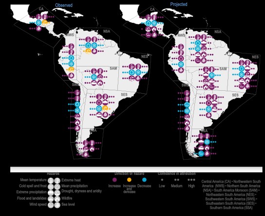 Figura 1. Riscos observados e projetados na América Central e do Sul